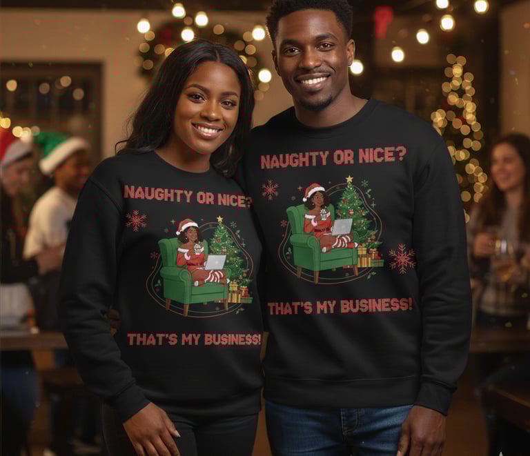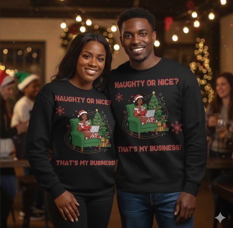 Whether it’s a holiday party, a casual day at home, or a side hustle grind, our sweatshirts are made to inspire confidence, laughter, and self-expression.
